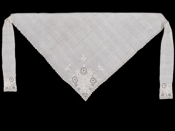 Plena ze Sulislavi, bíle vyšívaná s vyšívanými vázankami.. Darováno od Marie Králencové ze Sulislavi, ženy obecního starosty Adama Králence. Manželé Králencovi byli vlastenci, mecenáši, sběratelé a podporovatelé místní lidové kultury. Jejich působení datujeme do 2. poloviny 19. století až počátku 20. století.