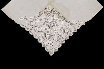 Plena bíle vyšívaná, velká kytice s velkými dírkami a růžovými výplněmi. Z dolního rohu vybíhá dvojitý hádek, který ohraničuje výšivku nahoře. Při okraji cípky dirkované a vyplněné spirálami s pavoučky. Nošena ženami v ruce do cípu shrnutá s vyšíváním navrch, na ní modlitby. Vyšití pleny bez plátna stálo prý 25 zlatých. Výšivka připomíná plaskou. M. Lábková: severozápadně od Hostouně – jižně od Stráže a Boru u Bernartic. Koupena 13. 1. 1917 od Marie Dudové, překupnice z Holýšova.